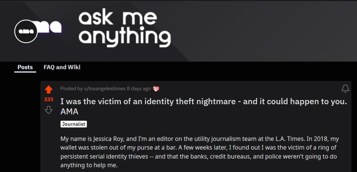 Identity theft Reddit AMA with Jessica Roy Los Angeles Times